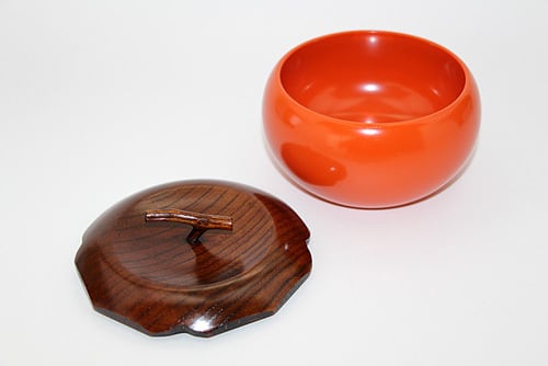 持ち手が枝のようになっていて、色目も洗朱になっており、より柿らしく上品になっています。